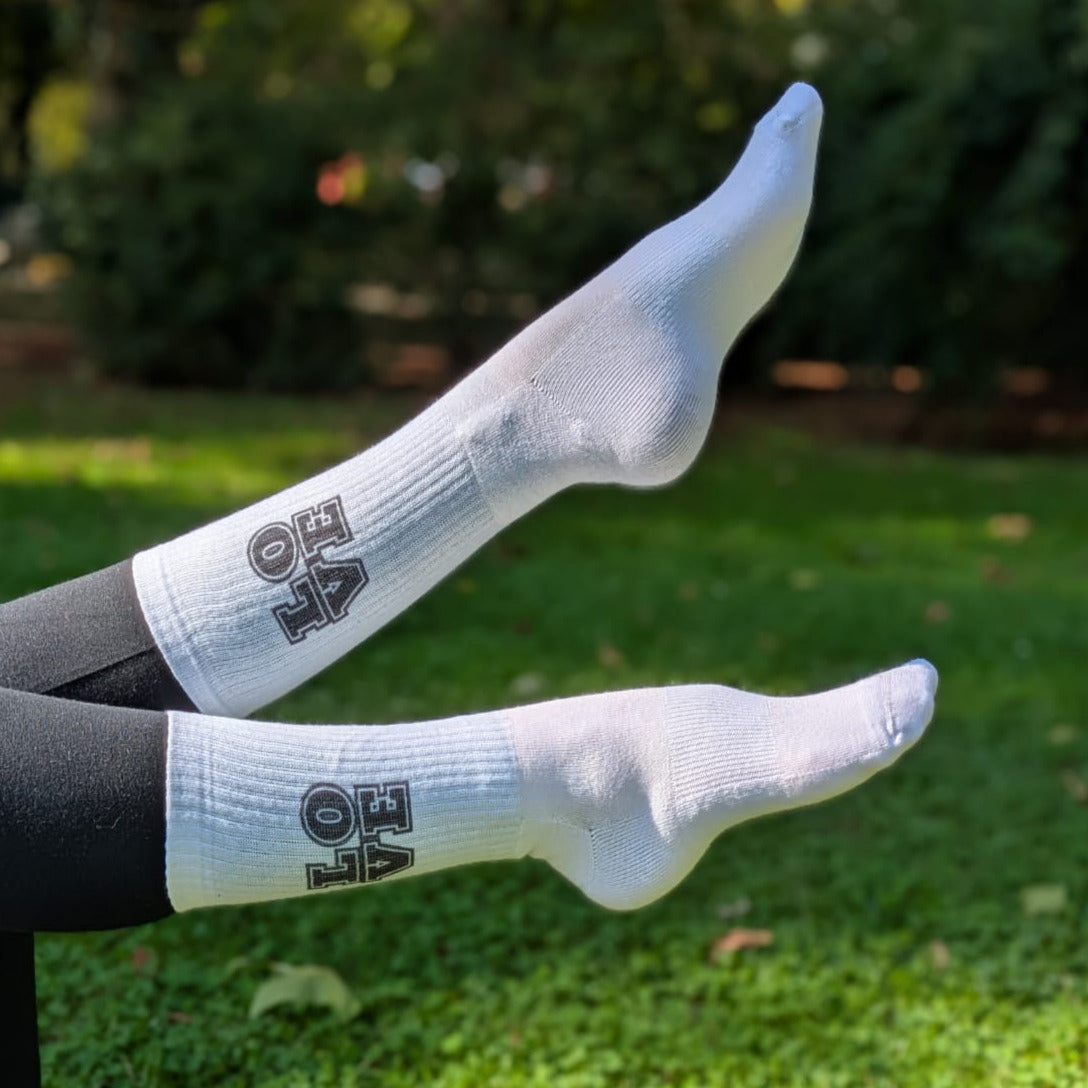 Die modische Sport- und Freizeitsocke bedrucken wir mit einer Message.
